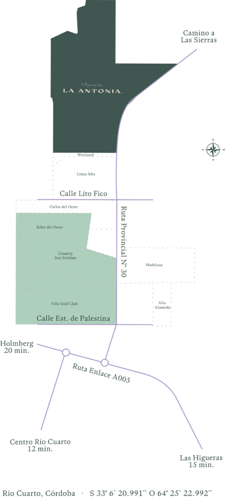 A 12 minutos del Centro de la Ciudad, Ayres de La Antonia ofrece un espacio rodeado de naturaleza, con todos los servicios y comodidades que estabas buscando. Con sus 500 lotes disponibles, te invitan a formar parte de esta historia, en la cual podés ser el protagonista.